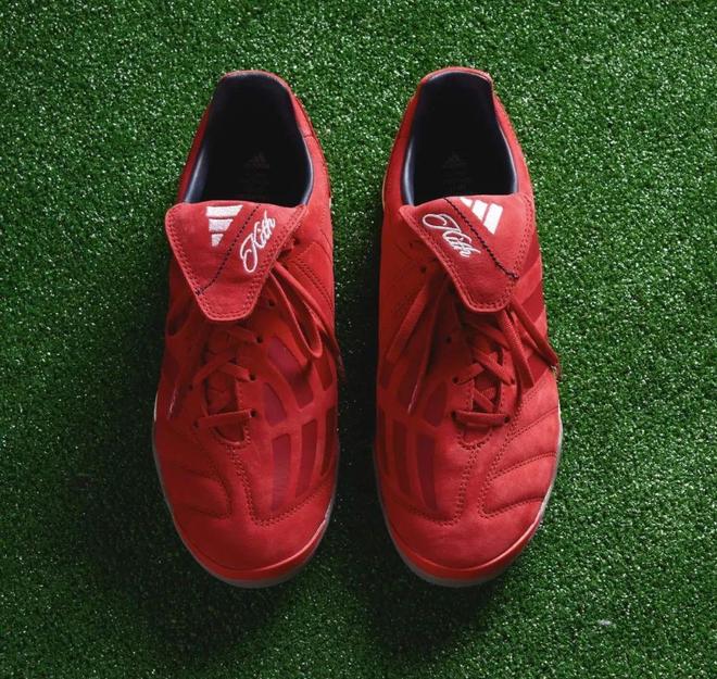 其中Predator Mania是在2002年世界杯上声名鹊起一款标志性的足球鞋,其标志性的折叠鞋舌上印有Kith Monogram图案,阿迪达斯条纹上则印有Kith FC的图案。